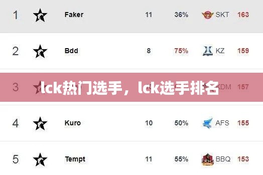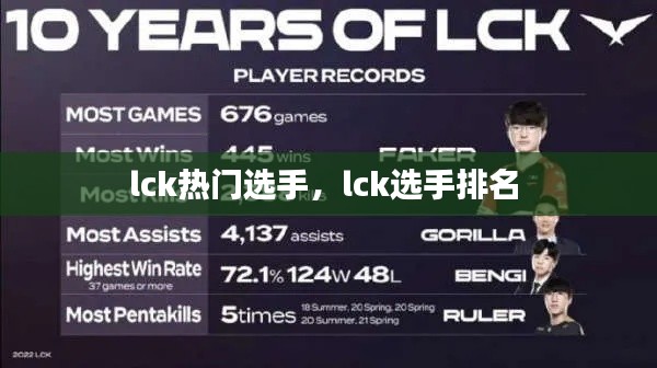 电子竞技在全球范围内越来越受到关注,而英雄联盟(League of Legends,简称LoL)作为其中最热门的游戏之一,拥有庞大的粉丝群体。在英雄联盟职业赛场上,LCK(League of Legends Championship Series)作为韩国的顶级联赛,一直以来都以其高水平的竞技和激烈的对抗而闻名。本文将介绍几位LCK的热门选手,他们凭借出色的个人技术和团队协作,在赛场上取得了辉煌的成就。