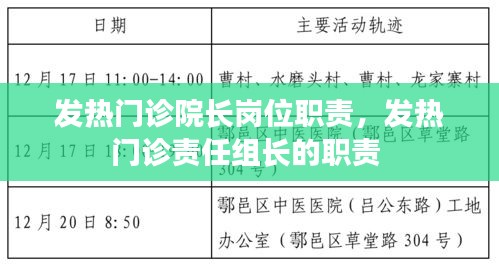 发热门诊院长岗位职责,发热门诊责任组长的职责