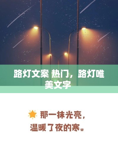 路灯,这座城市的守护者,以其独特的光芒,照亮了夜晚的道路,温暖了人们的心。在未来的日子里,随着科技的不断进步,路灯将变得更加智能、环保、美观。让我们一起期待,那些照亮夜空的路灯,为我们的生活带来更多的便利和美好。