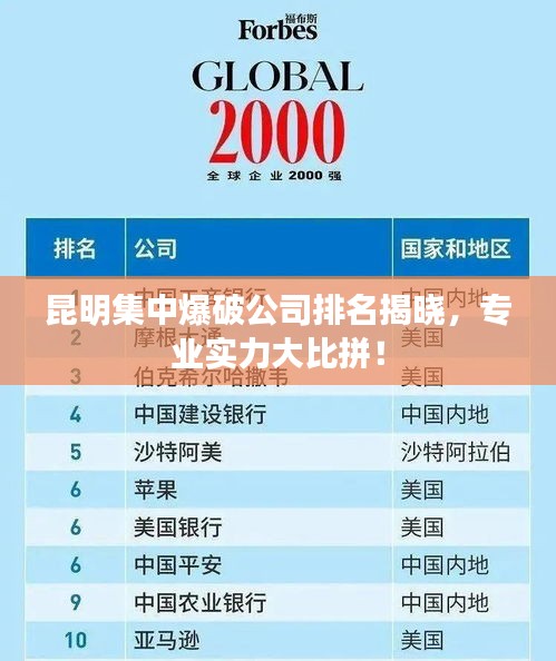 随着建筑行业的不断发展,爆破工程已成为现代城市建设中不可或缺的一部分,昆明作为云南省的省会城市,集中了许多专业的爆破公司,本文将介绍昆明集中爆破公司的排名,以便为需要爆破工程服务的企业和个人提供参考。