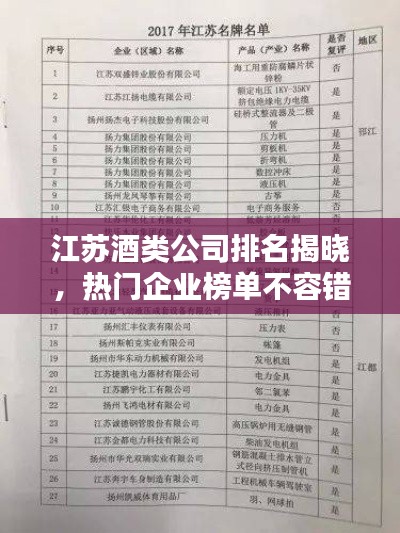 江苏,以其独特的地理位置和丰富的资源,自古以来便是酒文化的繁荣之地,我们就来探讨一下江苏酒类公司的排名,了解这些在这片土地上孕育出的酒企巨头。