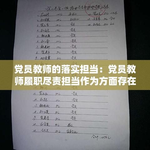 党员教师作为我国教育事业的重要力量,落实担当是新时代赋予他们的使命。让我们共同努力,发挥党员教师的先锋模范作用,为我国教育事业的繁荣发展贡献力量,为实现中华民族伟大复兴的中国梦而努力奋斗。
