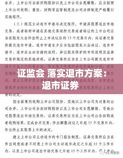 近年来,我国资本市场发展迅速,但同时也暴露出一些问题,如上市公司质量参差不齐、市场操纵行为频发等。为了维护资本市场的健康发展,证监会不断加强监管力度,其中落实退市方案是重要的一环。退市制度旨在淘汰市场中的劣质公司,保护投资者利益,促进资本市场资源的合理配置。
