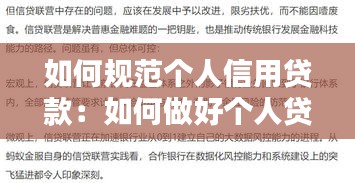 随着金融市场的不断发展,个人信用贷款已经成为许多人的首选融资方式。然而,由于监管不严和个人信用观念的缺失,个人信用贷款市场存在诸多问题,如高利率、欺诈行为等。为了保障消费者的合法权益,规范个人信用贷款市场,本文将从以下几个方面探讨如何规范个人信用贷款。