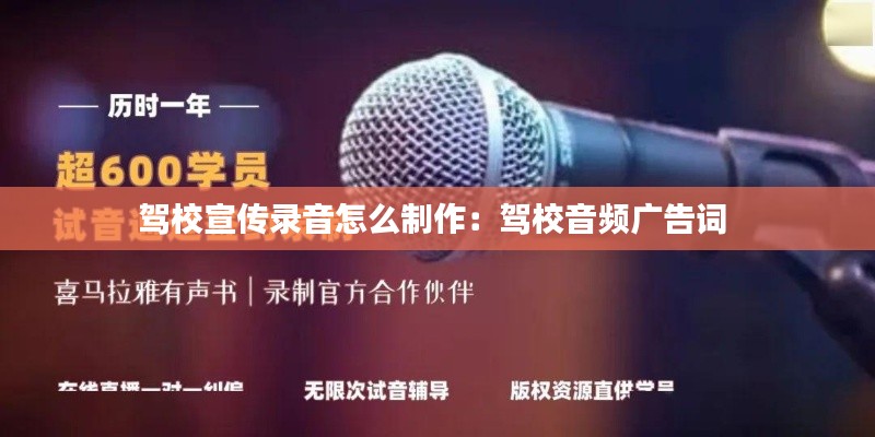 制作驾校宣传录音是一个系统工程,需要从了解目标受众、收集素材、编写脚本、录制、后期制作到发布推广的各个环节精心策划和执行。通过以上步骤,相信能够制作出一篇吸引人的驾校宣传录音,为驾校吸引更多潜在学员,提升驾校的市场竞争力。