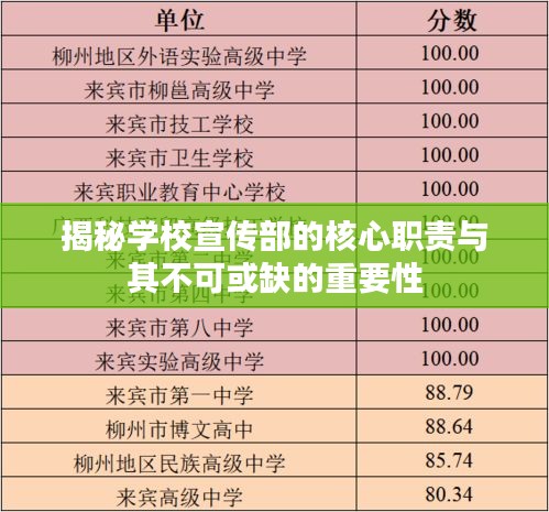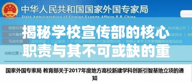 在当今信息时代,学校宣传部的职责愈发显得重要,一所学校的发展离不开有效的宣传,而宣传部正是执行这一职责的核心部门,本文将详细介绍学校宣传部的职责,并阐述其在现代学校教育体系中的重要性。