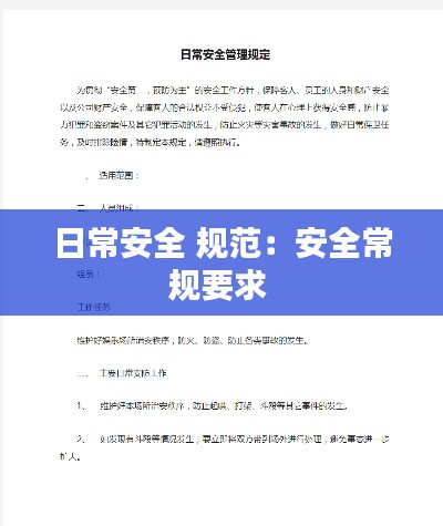 日常安全规范是我们生活中不可或缺的一部分,只有每个人都能够遵守这些规范,才能共同营造一个安全、和谐的生活环境。让我们从现在开始,养成良好的安全习惯,为自己和他人的安全保驾护航。