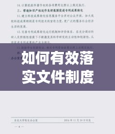 有效落实文件制度是一个系统工程,需要组织从多个方面入手。通过明确文件制度的重要性、制定清晰的制度、建立有效的管理系统、强化监督与考核以及持续改进与更新,组织可以确保文件制度得到有效执行,从而提高工作效率、降低风险,并推动组织的持续发展。
