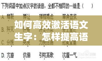高效激活语文生字需要结合多种方法,从趣味记忆、语境学习、多媒体工具、定期复习到实际应用,每一个环节都至关重要。通过不断实践和探索,相信每个人都能找到适合自己的学习方法,提高语文生字的学习效果。
