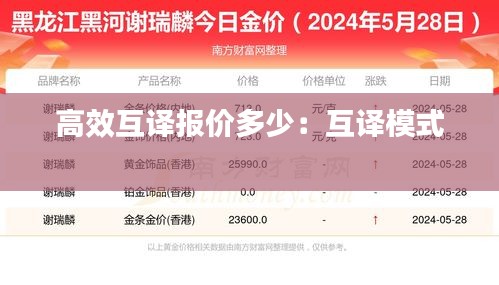 根据上述因素,高效互译的报价范围可以从每千字几十元到几百元不等。以下是一些具体的报价参考: