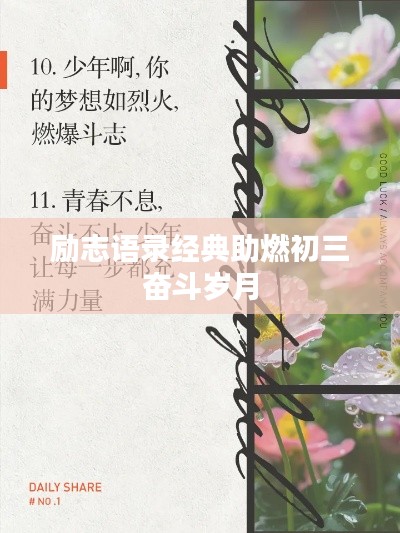初三,是人生中一个重要的转折点,面临着中考的压力和未来的选择,每一位初三学子都需要一些励志的话语来鼓舞自己,坚定信心,本文为您带来一系列经典励志语录,助您在初三这段时光中勇往直前。