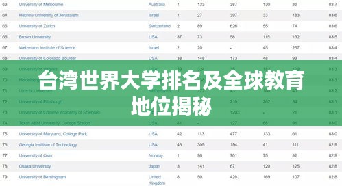 随着全球教育的快速发展,各国大学的排名成为了评估教育质量、科研实力以及国际影响力的重要指标之一,在这样的背景下,台湾的大学排名逐渐引起了全球的关注,本文将探讨台湾的大学在全球大学排名中的表现以及其在全球教育领域的地位。