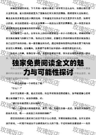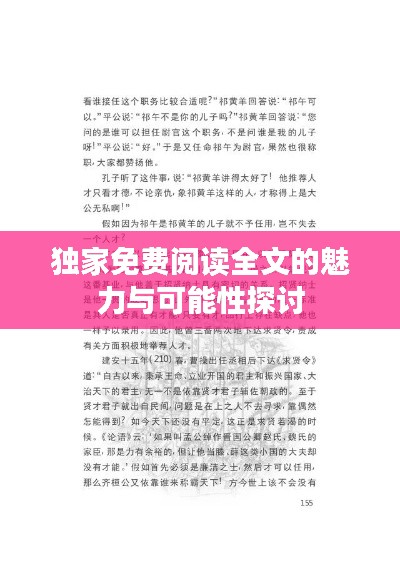随着信息时代的到来,阅读已成为人们生活中不可或缺的一部分,在这个知识爆炸的时代,如何获取优质阅读资源,成为了许多人关注的焦点,而“独家拥有全文免费阅读”这一概念,正是在这样的背景下应运而生,其为广大读者提供了一种全新的阅读体验。